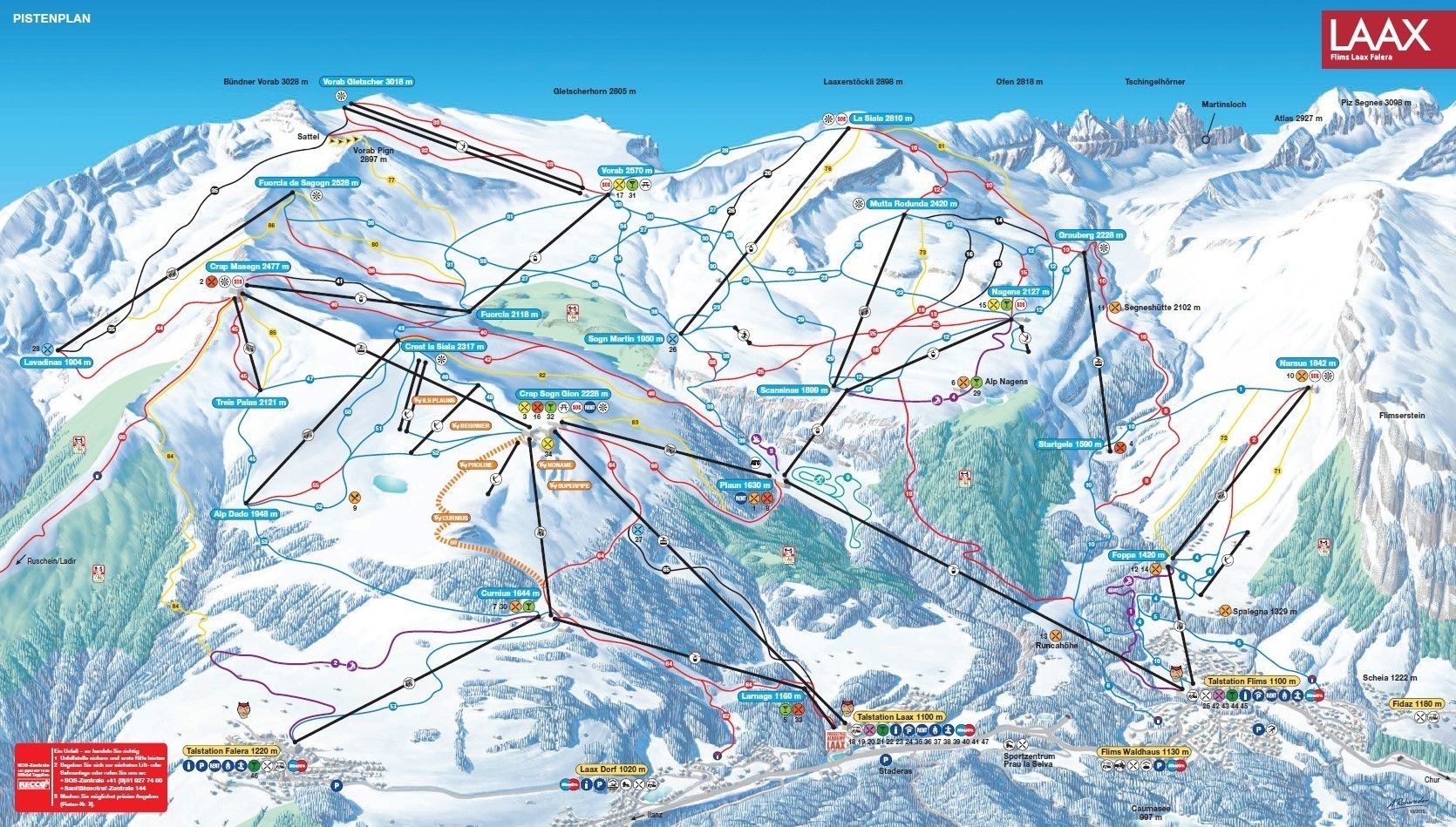 El municipio de Laax, con sus 3 pueblos Flims, Laax y Falera, se encuentra en el cantón de Graubünden, en Suiza. Con una altitud de 1.100 m está situado en una planicie al sol sobre la garganta del Rin. Gracias a los diversos eventos de snowboard, funparks y la gran oferta de zonas de descenso libre, Laax se ha convertido en la meca de los amantes del snowboard. Debido a la igualmente rica oferta en pistas de todos los grados de dificultas, el luegar también es perfectamente apto para familias y niños. Lejos de las pistas se encuentran senderos señalizados y 2 caminos para trineos para que los no esquiadores disfruten de una agradables oferta de ocio. Además cuenta con un atractivo programa de après-ski con varios bares y clubs.Vorderrhein